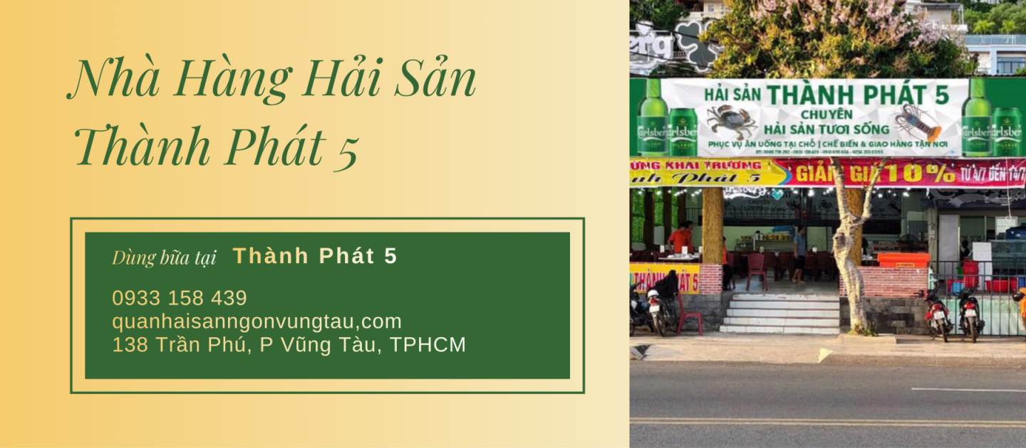 Nhà hàng Hải sản Thành Phát 5 là địa điểm ẩm thực quen thuộc của du khách và người dân địa phương khi ghé thăm thành phố biển Vũng Tàu. Với lợi thế nằm trên trục đường ven biển Trần Phú, nhà hàng mang đến trải nghiệm thưởng thức hải sản tươi sống – không gian thoáng mát – hương vị chuẩn biển.