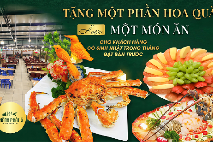 Nếu bạn đang tìm kiếm địa điểm tổ chức tiệc liên hoan, họp mặt hay sinh nhật tại Vũng Tàu, Nhà hàng Hải sản Thành Phát 5 là lựa chọn lý tưởng được nhiều khách hàng tin tưởng. Với không gian rộng rãi, hải sản tươi sống chất lượng và dịch vụ chuyên nghiệp, Thành Phát 5 mang đến những buổi tiệc trọn vẹn và đáng nhớ.